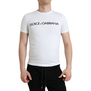 Dolce & Gabbana White Logo Print Cotton Crew Neck T-shirt
