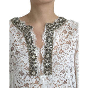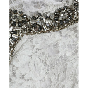 Dolce & Gabbana White Lace Crystal Embellished Shift Dress