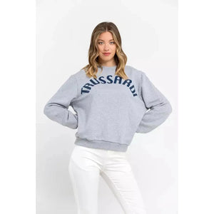 Indulge in sheer comfort without missing a beat on style with Trussardi’s oversized round-neck sweatshirt. This Italian-made piece is a blend of cozy cotton and durable polyester, cut with trendsetting dropped-shoulder sleeves – perfect for that slouchy-chic look. Its gray canvas is emblazoned with maxi lettering, making a bold statement that showcases your fashion-forward mindset. Transition effortlessly from a casual coffee date to an urban adventure with this versatile addition to your wardrobe.