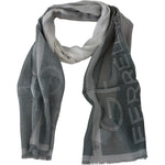 GF Ferre Gray Wool Viscose Foulard Patterned Branded Scarf