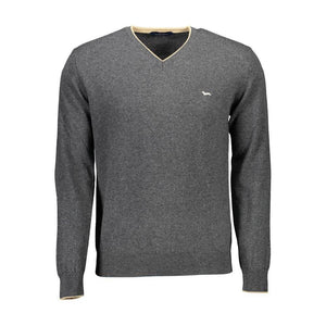 long-sleeved sweater, "v" neckline, contrasting details, logo