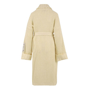 Elevate your style game with Hinnominate’s opulent long pearl ribbed knit cardigan. This Italian-crafted gem is a vision in white, seamlessly marrying sophistication with relaxed charm. Accented by a chic ribbon belt and practical front pockets, it’s crafted to enrich your wardrobe with an air of effortless elegance. Make a bold statement each time you step out enveloped in this luxurious blend of marabou and polyester.