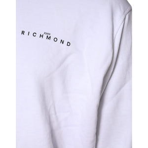John Richmond White Logo Cotton Hooded Sweatshirt Sweater