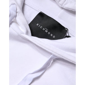 • John Richmond White Logo Cotton Hooded Sweatshirt Sweater