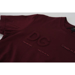 Dolce & Gabbana Maroon Printed Short Sleeves Men T-shirt