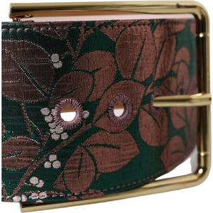 Dolce & Gabbana Multicolor Floral Jacquard Lurex Gold Buckle Belt