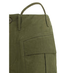 R13’s cotton Pants have a flared pattern and a button and zipper closure. They feature two maxi cargo patch pockets on the front and belt loops on the waistband, offering a casual and functional look with a touch of style.