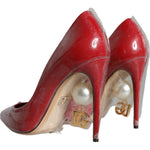 Dolce & Gabbana Red Patent Leather Faux Pearl Heels Pumps Shoes