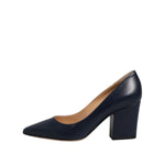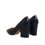 Sergio Rossi Blue Leather Pointed Toe Block Heels Shoes