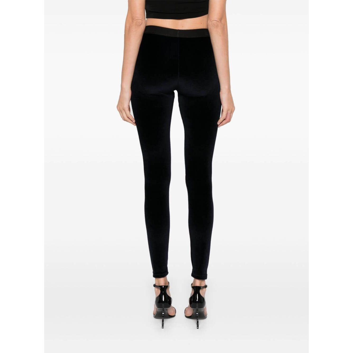 midnight blue velour high waist elasticated logo waistband skinny cut Velvet leggings Size and Fit - This piece fits true to size. We recommend you get your regular size. Model is 1,75m / 5ft 8in wearing size S