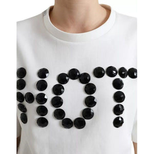 Dolce & Gabbana White Cotton Stretch Black HOT Crystal T-shirt