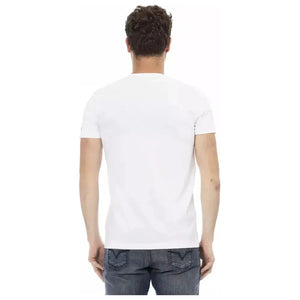Unleash your inner trendsetter with the Trussardi Action White T-Shirt, a statement piece that combines comfort with cutting-edge style. The shirt features a flattering V-neck and a striking front print, distinguishing you from the crowd. Ideal for a casual day out or a night on the town, this T-shirt is a versatile addition to your wardrobe. With its fine blend of cotton and viscose, experience both luxury and breathability. Elevate your fashion game!