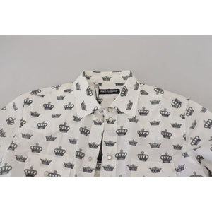 Dolce & Gabbana White Crown Print Slim Fit Cotton Shirt