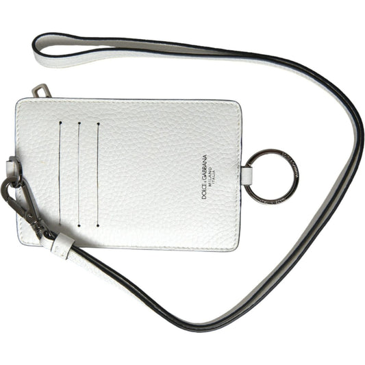 白色小牛皮挂绳徽标卡夹钱包