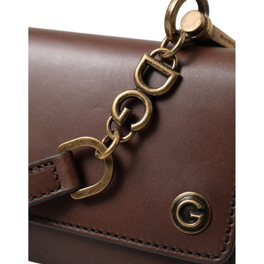 Dolce & Gabbana Brown Calf Leather Zip Logo Keyring Coin Purse Men Wallet