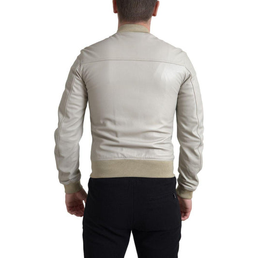 奶油色皮革飞行员夹克