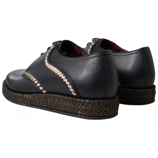 Dolce & Gabbana Black Perforated Leather Lace Up Derby Shoes