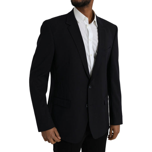 优雅的羊绒-丝绸混纺蓝色西装外套