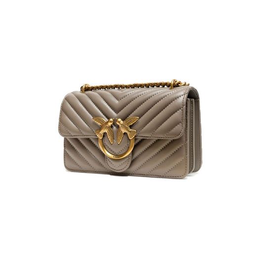 PINKO Grey Leather Love One Mini Shoulder Bag
