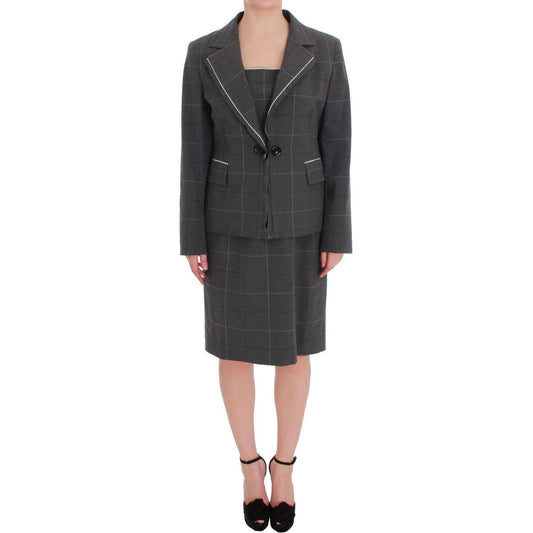 优雅灰色条纹连衣裙和西装套装