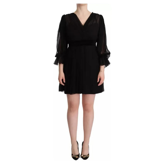 Dolce & Gabbana Black V-neck Long Sleeves Mini A-line Dress