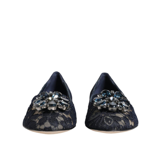 Dolce & Gabbana Blue Taormina Lace Crystals Flats Shoes