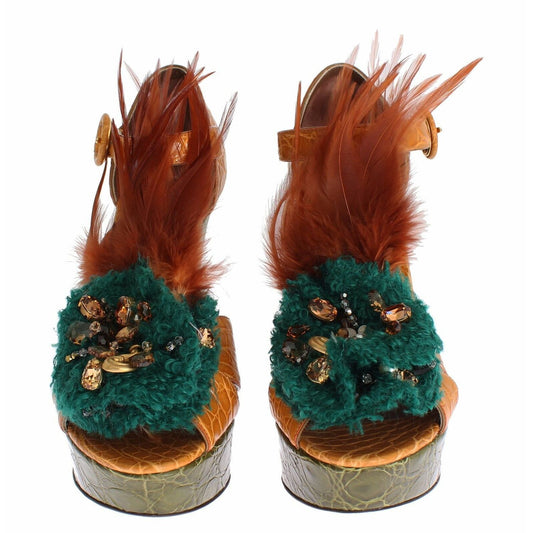 Dolce & Gabbana Orange Leather Crystal Platform Sandal Shoes