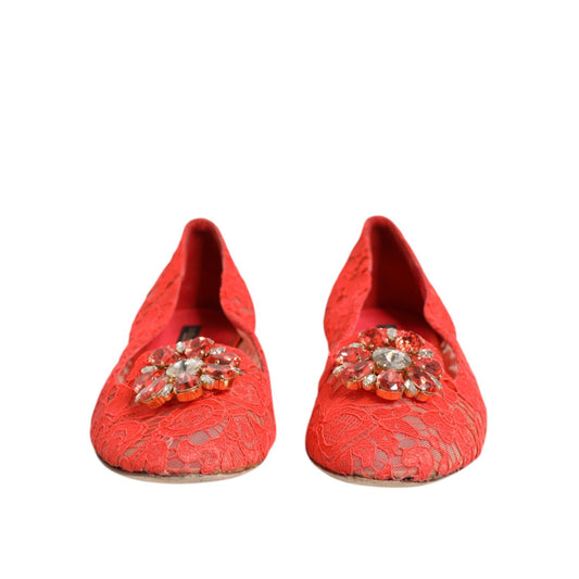 Dolce & Gabbana Orange Lace Crystal Ballet Flats Loafers Shoes