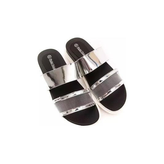 Dolce & Gabbana Silver Crystals T-strap Sandals Leather Shoes