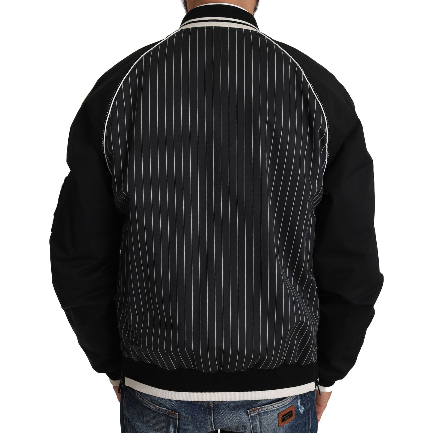 这款令人惊艳的 Dolce & Gabbana 飞行员夹克完美融合了奢华与前卫设计,让您尽显精致风格。这款夹克饰有亮片和串珠贴花,以条纹图案的别致黑色背景为背景,闪闪发光。全拉链开合、两个前袋和两个内袋兼具实用性和时尚感。无可挑剔的徽标细节为品牌增添了独特的标志性风格,而优质材料成分确保了卓越的贴合度和舒适度。这款意大利制造的单品一定会让您成为众人瞩目的焦点,让您的衣橱更上一层楼。