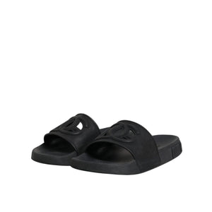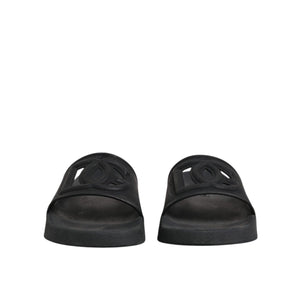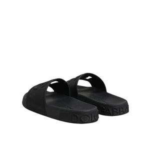 Dolce & Gabbana Black Rubber Slides Sandals Beachwear Shoes