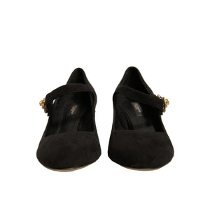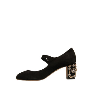 Dolce & Gabbana Black Suede Jewelled Mary Jane Pumps Shoes