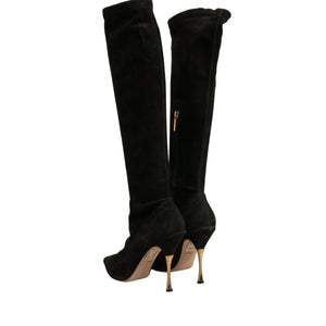 Dolce & Gabbana Black Suede Stiletto Knee High Boots Shoes