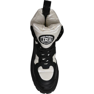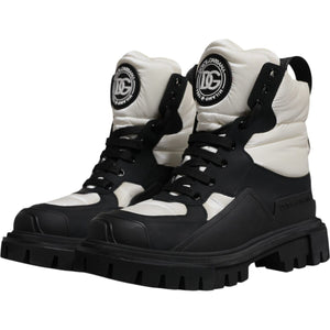 Dolce & Gabbana Black White Padded Mid Calf Lace Up Boots Shoes