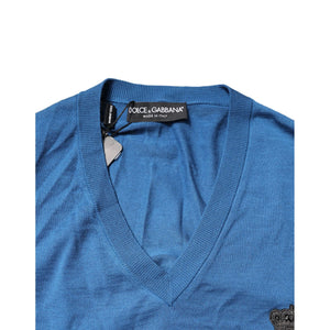 Dolce & Gabbana Blue Cashmere Crown V-neck Pullover Sweater