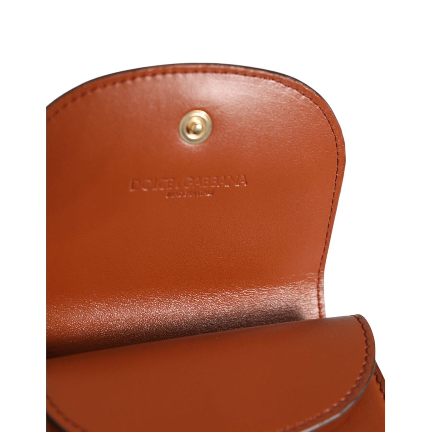 Crafted from premium calf leather, this compact purse features a bold brown leopard print with a structured silhouette. The interior is smooth brown leather with dual compartments and a secure snap button closure. Finished with a gold-tone Dolce & Gabbana logo plaque at the front, this accessory is both practical and chic.
