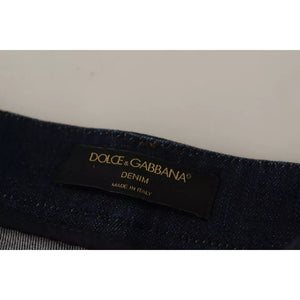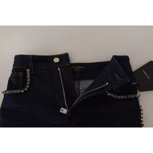 Dolce & Gabbana Dark Blue Embellished Denim Hot Pants Shorts