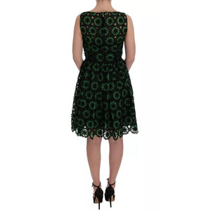 Dolce & Gabbana Green Floral Ricamo A-Line Shift Dress