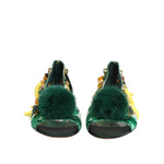 Dolce & Gabbana Green Mink Fur Satin Banana Leaf Sandals Shoes