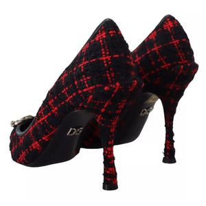Dolce & Gabbana Red Black Tweed DG Amore Heels Pumps Shoes
