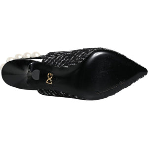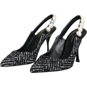 Dolce & Gabbana White Black Chevron Faux Pearl Slingback Shoes