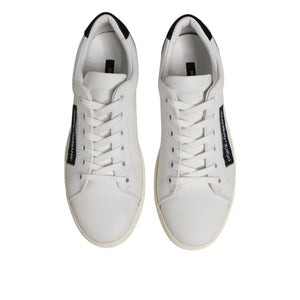 Dolce & Gabbana White Black Leather Low Top Sneakers Shoes
