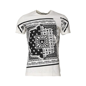 Dolce & Gabbana White Cotton Logo Bandana Print T-shirt