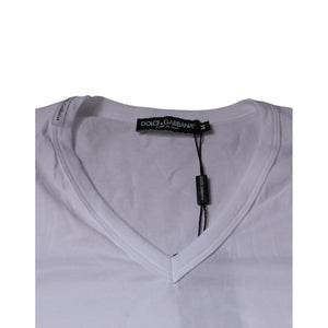 Dolce & Gabbana White Cotton V-neck Short Sleeves T-shirt