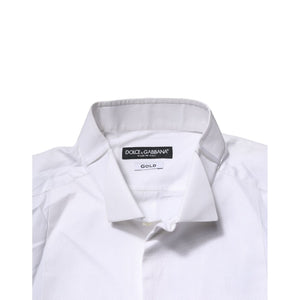 Dolce & Gabbana White GOLD Bib Poplin Dress Men Formal Shirt