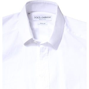 Dolce & Gabbana White GOLD Cotton Long Sleeves Dress Shirt