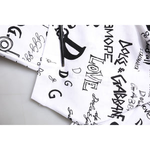 • Dolce & Gabbana White Graffiti Print Cotton Crew Neck T-shirt