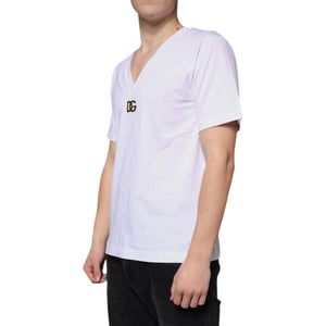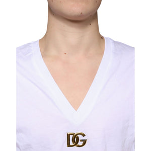 Dolce & Gabbana White Logo Cotton Vneck Short Sleeve T-shirt