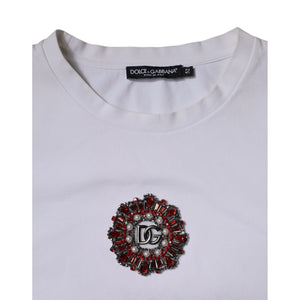 Dolce & Gabbana White Logo Embellished Crew Neck T-shirt