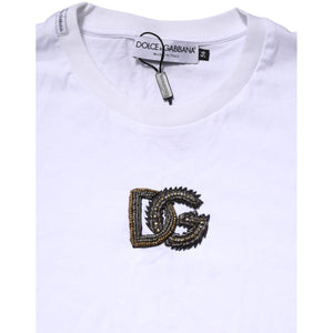 Dolce & Gabbana White Logo Embroidery Crew Neck T-shirt